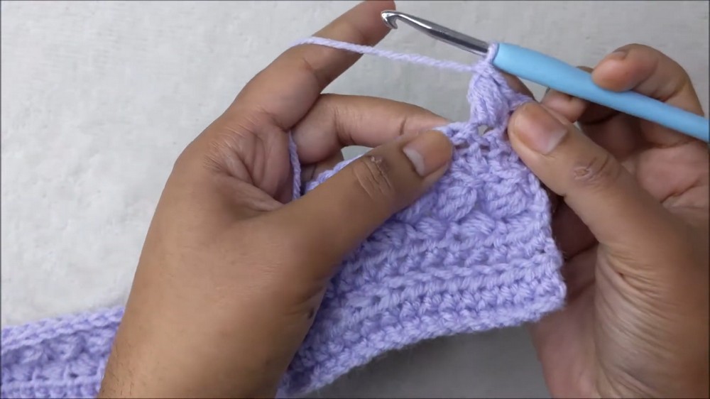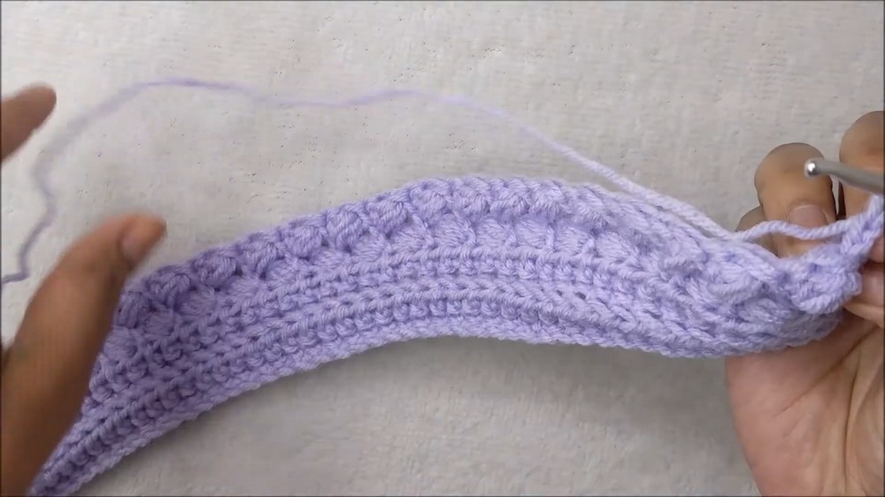This simple yet effective technique creates the signature ribbed texture, giving the headband a soft stretch and snug fit. For added flair, puff stitches are cleverly introduced every few rows, creating a decorative “pop” effect that adds character to the pattern.