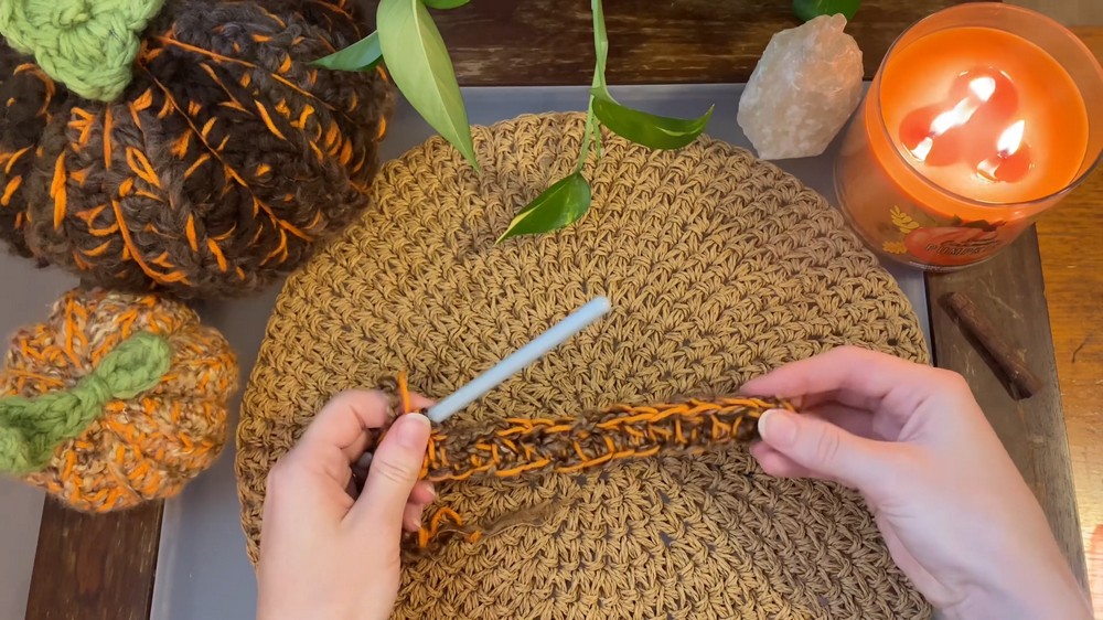 • Crochet a chain based on the desired height of your pumpkin.