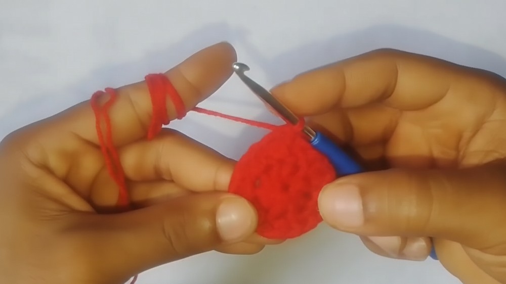 - Chain 1, then work 10 half double crochets (HDC) into the magic ring.
