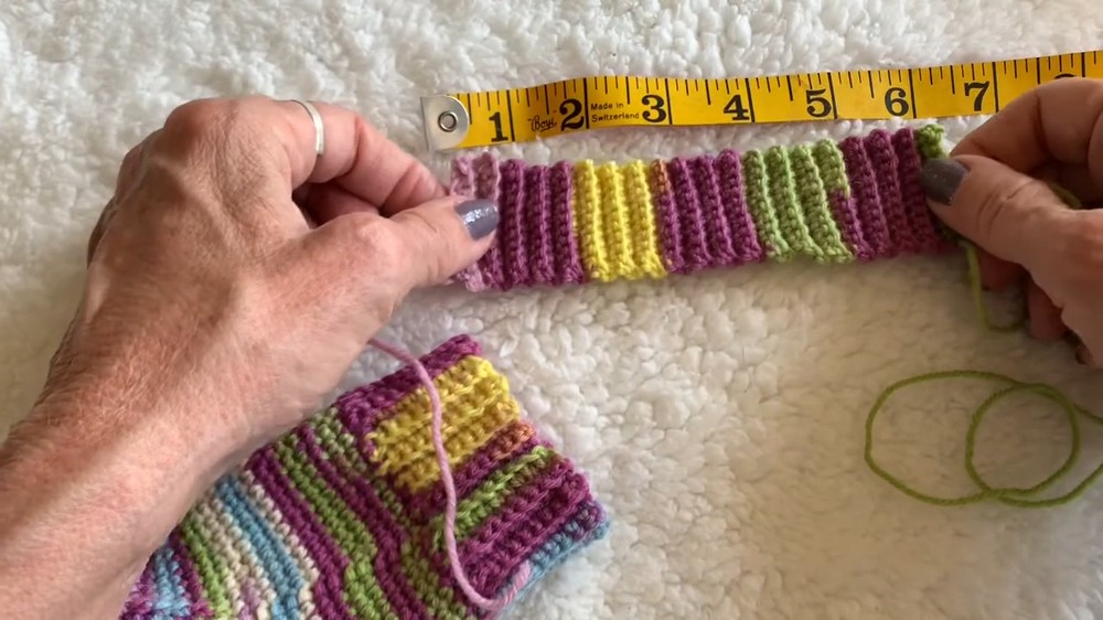 - Repeat Until Six Inches: Continue SC BLO rows until the cuff measures 6 inches unstretched, ensuring that it stretches to 6.5 inches when pulled.