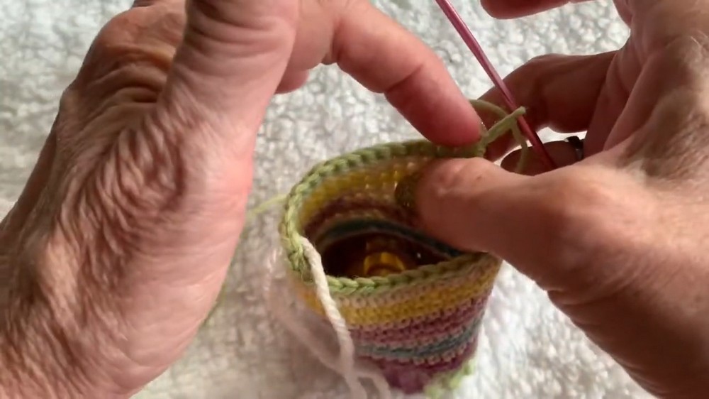 - Single Crochet Around: Work 35 single crochets (SC) evenly around the bottom edge of the cuff. Use the ridges for guidance, ensuring you grab two strands of each stitch to keep the cuff strong. Adjust spacing if necessary.