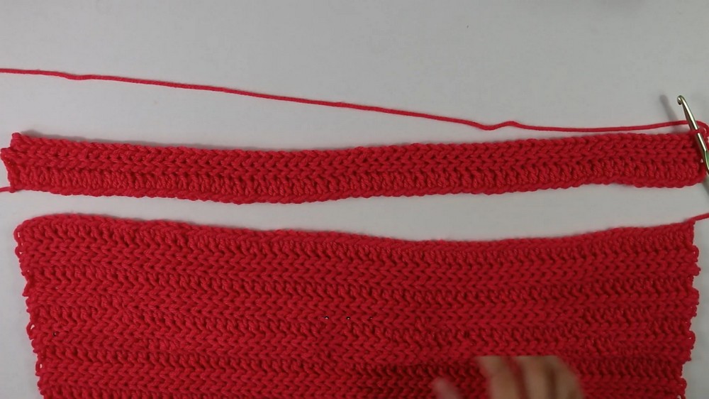 - Row 5 and beyond: Alternate three rows of back-loop slip stitches with one row of back-loop double crochets until completing 56 rows.