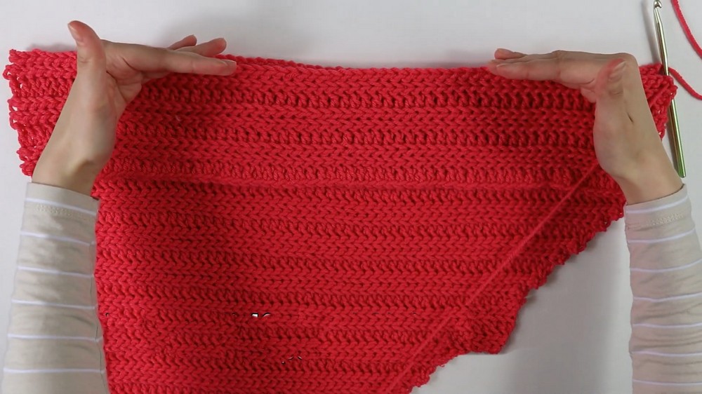- After 44 rows of gradual increases, work the next 12 rows straight for equal shoulder width (total: 56 rows).
