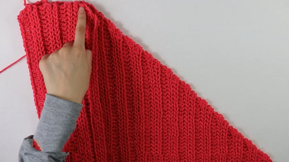 - Work regular rows but decrease stitches at the edges as demonstrated in the video.