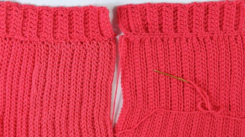 - Seam the sides together using a tapestry needle, leaving a gap (6.5 inches) at the top for armholes.
