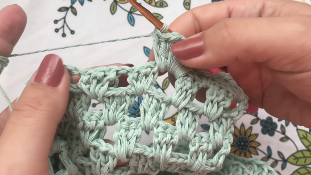 To ensure the work looks correct, you must use a larger hook size if you find you knit with high tension, as the loose, drapey quality is essential for this pattern.