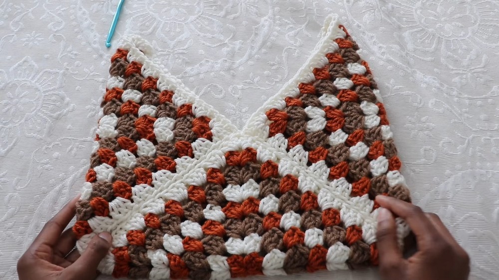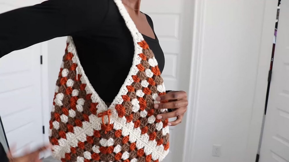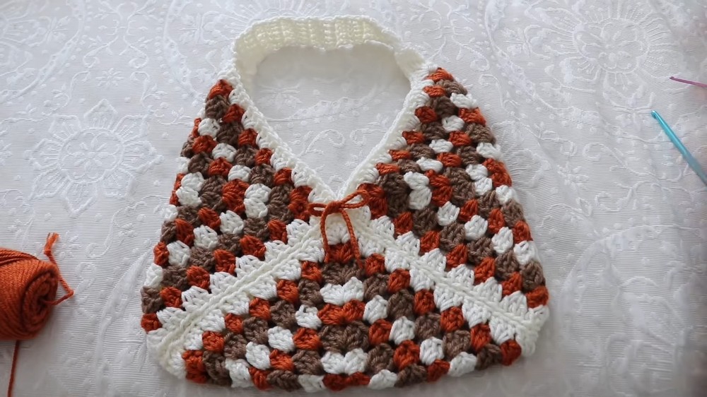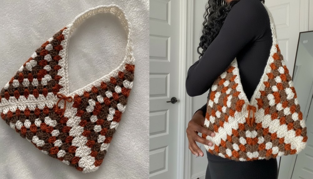 • Minimalistic Design: The bag is made with only three granny squares stitched together.