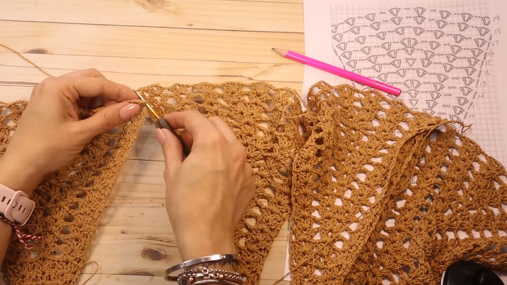 Maintain Loose Tension: Do not crochet tightly. Work your stitches and chains loosely to achieve the desired relaxed, flowing drape for a comfortable summer garment.