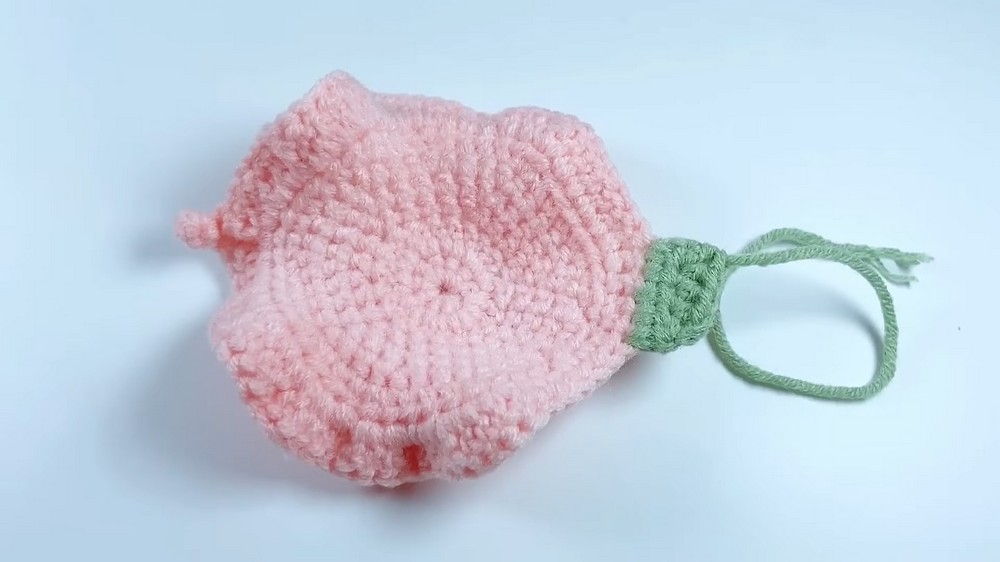 - Yarn: Pink for the flower petal, green for the stem and leaves, and an optional yellow for the flower heart.