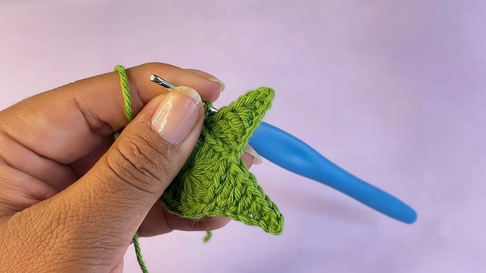 - Crochet back down symmetrically: single and double crochet as applicable.