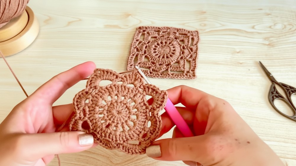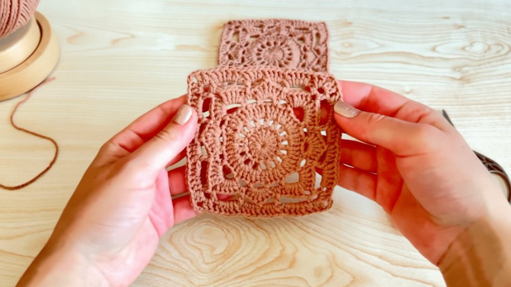 Always block your finished motif by lightly steaming or pinning it into shape. Blocking helps achieve a professional, uniform square shape, especially if the edges are uneven.