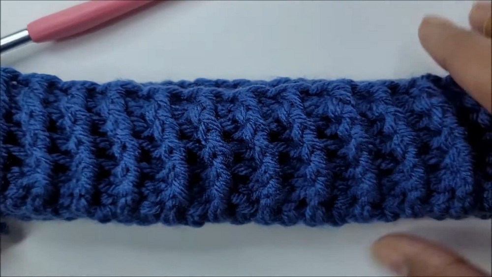 - Create a ribbed band by alternating front post half double crochet (FPHDC) and back post half double crochet (BPHDC) stitches. Repeat the FPHDC/BPHDC pattern for 3–5 rows, or until you’re satisfied with the band width (approximately 2 inches).