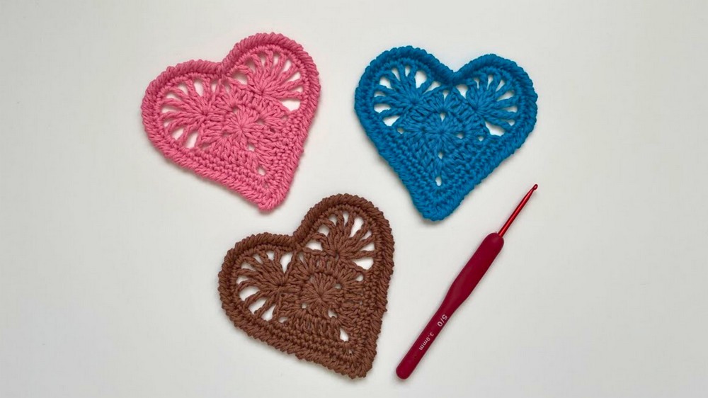 - Work three single crochets in some chain spaces and four in others to shape the heart.