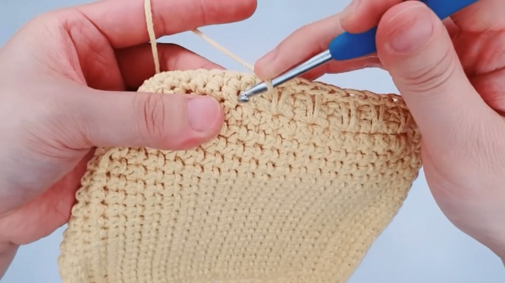 Textured Appearance: The Camel Stitch pushes the standard V-shape of the single crochet to the front of the work, creating horizontal, protruding chain patterns that give the bag significant texture and a solid, woven look.