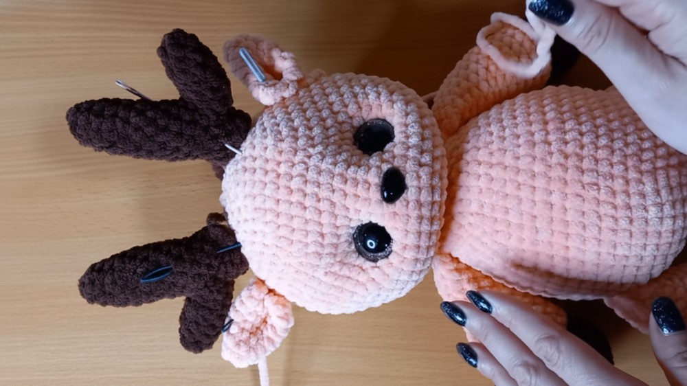Minimizing Sewing: You only need to sew the ears and antlers. You crochet all four legs and the tail directly into the body base and sides, eliminating tedious limb attachment.