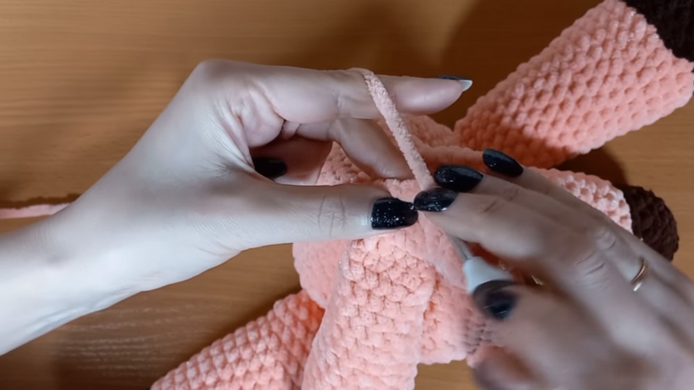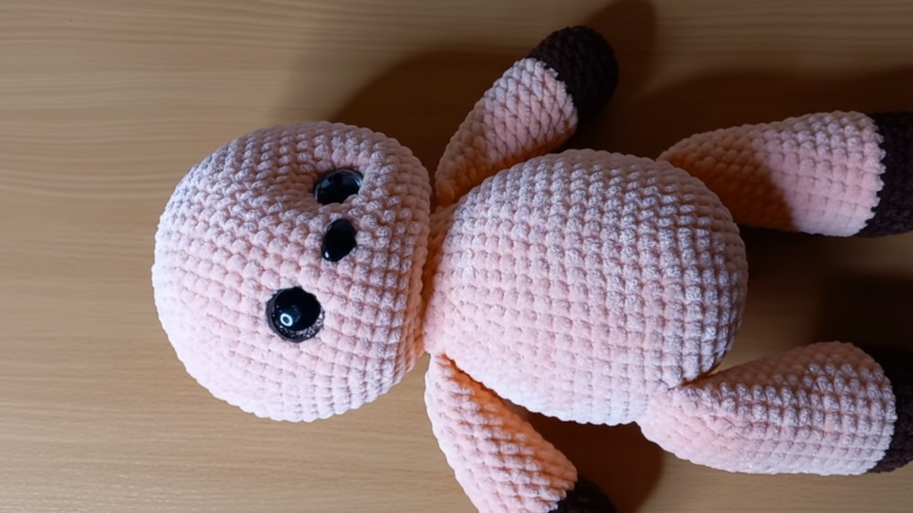 Check and Adjust Symmetry: When attaching the upper legs to the body, continuously check their placement against the lower legs for symmetry. Be prepared to slightly adjust the number of simple stitches between the legs if your row count placement is off, ensuring a visually perfect result.