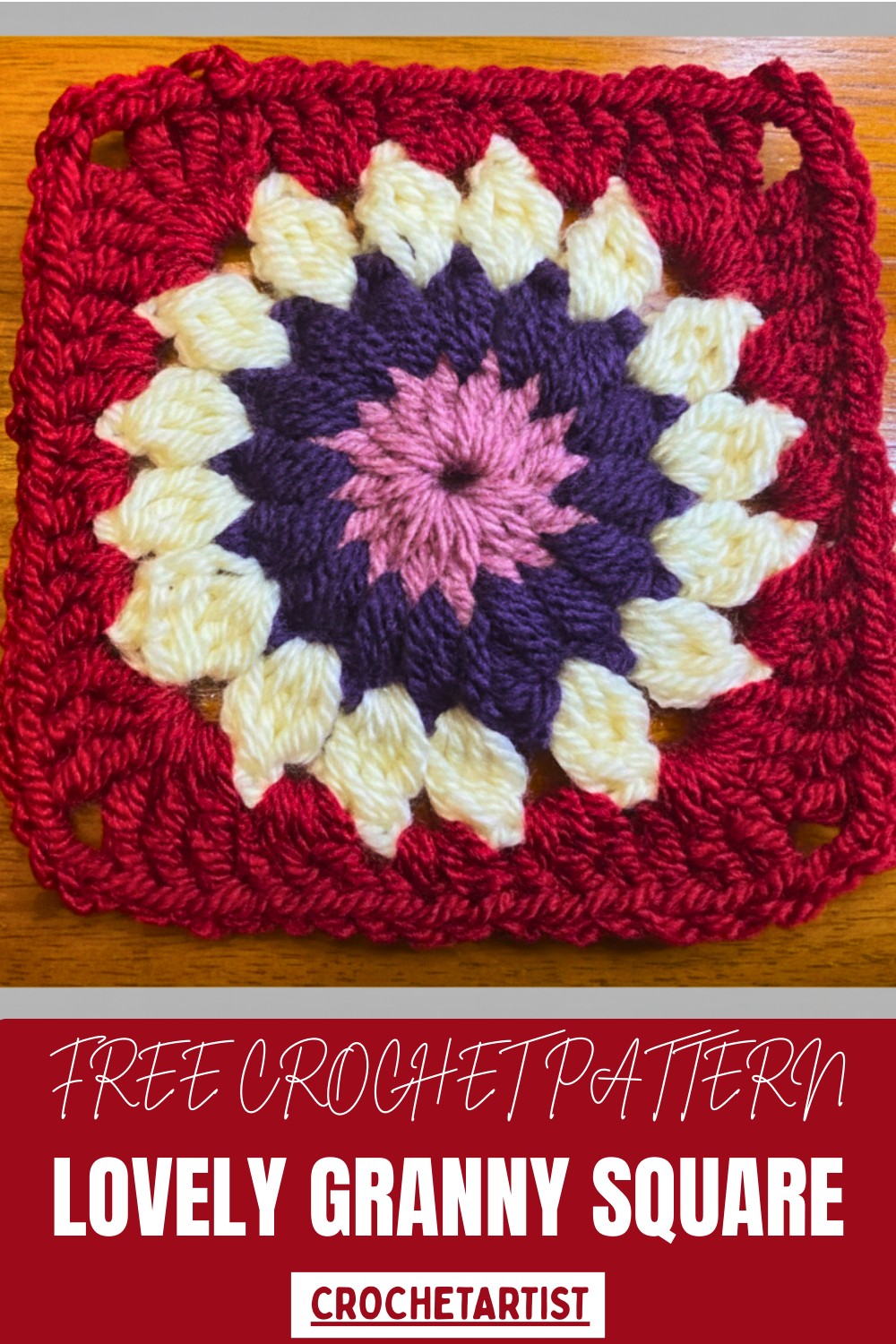 You have successfully completed a highly textured and beautiful granny square. The combination of puff stitches and the structured final round creates a unique motif ready to be incorporated into any larger project.