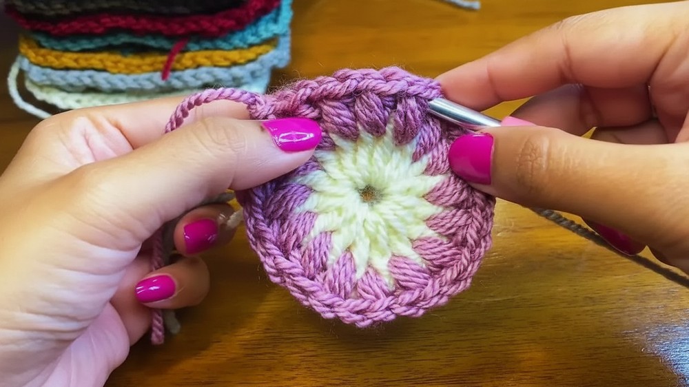 Puff Stitch Texture: You incorporate puff stitches in the second and third rounds to create a dense, highly textured center.
