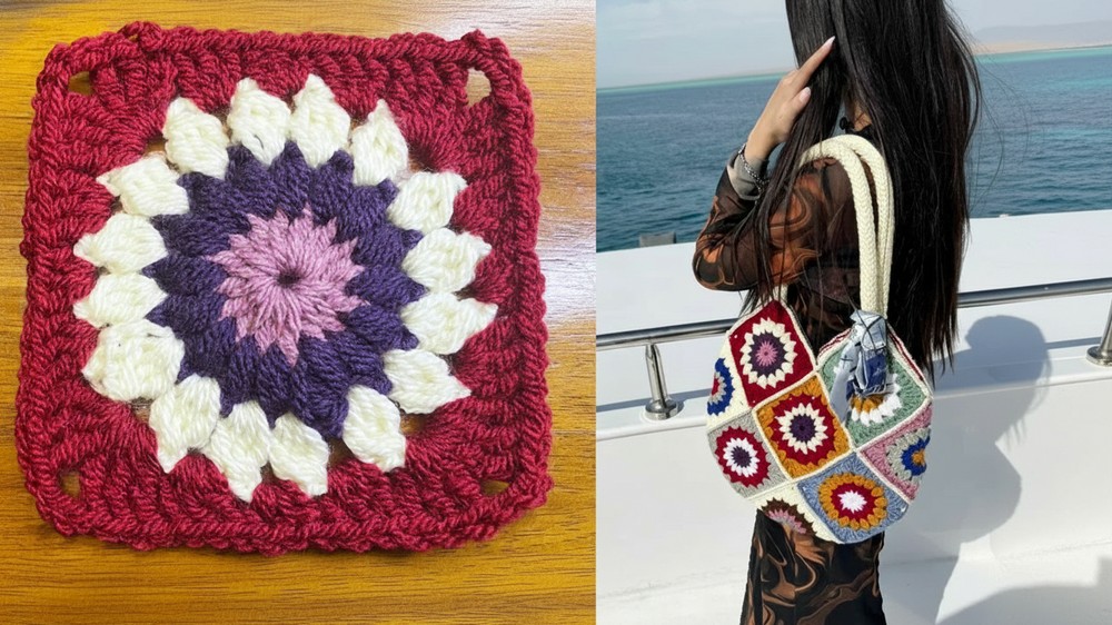 Use this square to construct larger items such as granny square blankets, bags, or pouches.