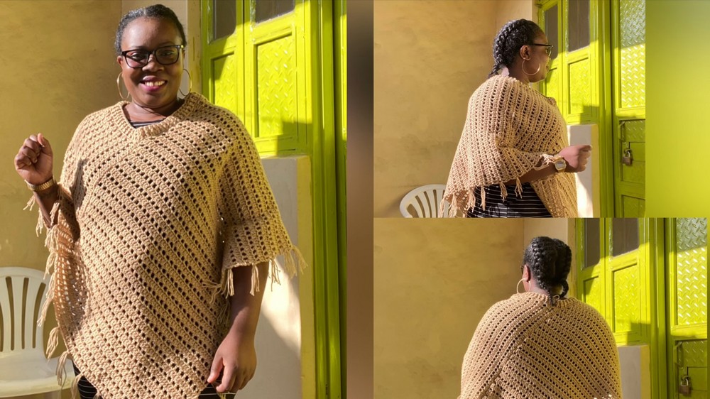 After your pieces are ready, you simply sew them together and add a long chain of stitches on each side to create the ties.