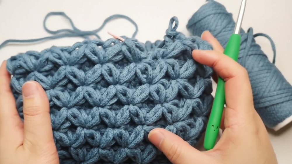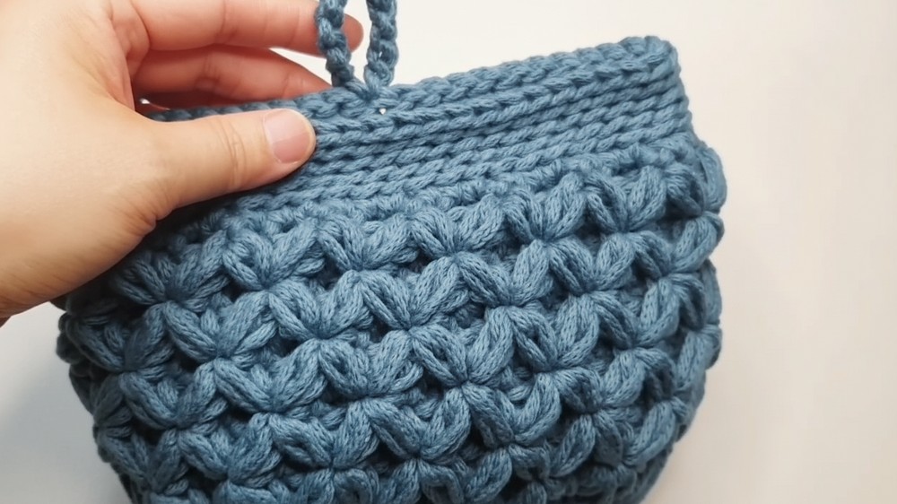 You completed the 3D Volume Mini Hobo Bag! By executing the precise, irregular increases in the base and mastering the thick, textured 3D stitch, you built a unique and durable accessory. The dense ribbing and added button closure give this handmade bag a professional and polished finish.
