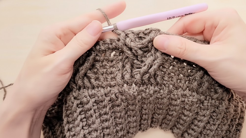 • Ribbed Edging: Starts with a sturdy single crochet ribbing.