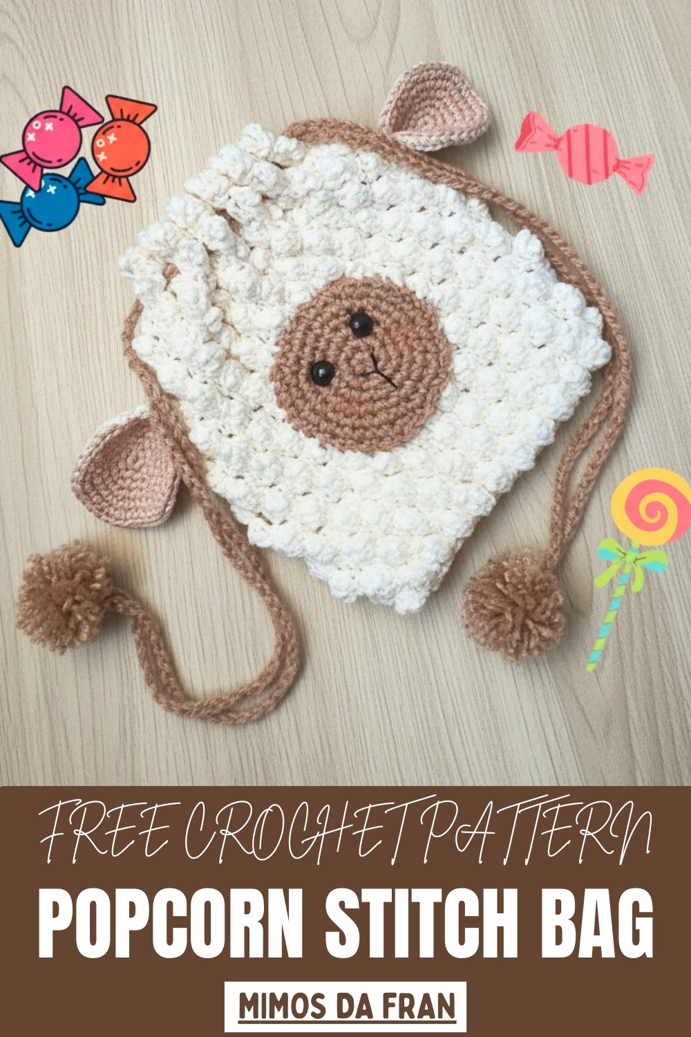 You have successfully crocheted and assembled this charming sheep sweet pouch. The Popcorn Stitch creates a lovely fluffy texture, resulting in a finished piece that is perfect for a gift or decoration.