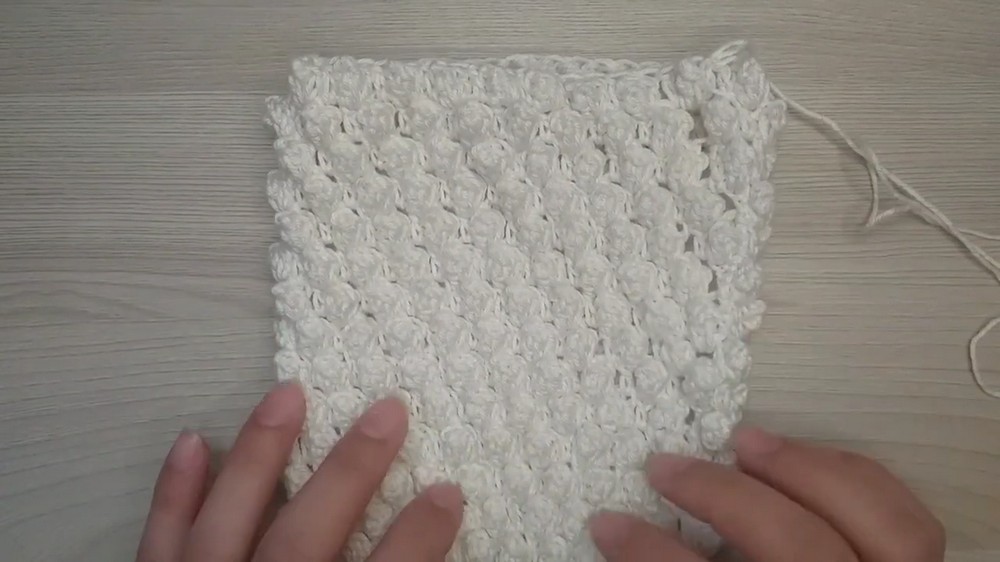 Pouch Height: Work a total of 14 rows of the Popcorn Stitch pattern for the main body of the pouch.