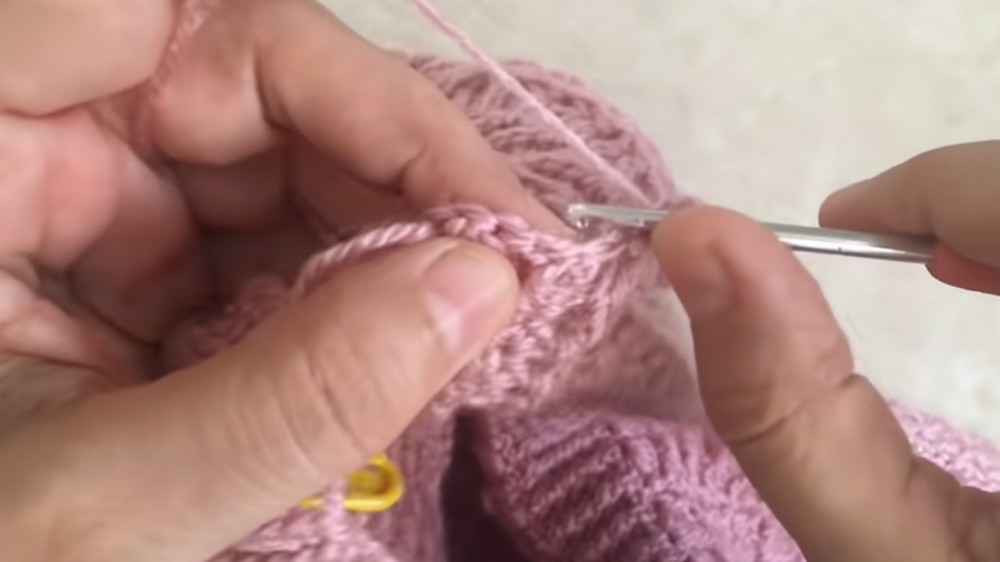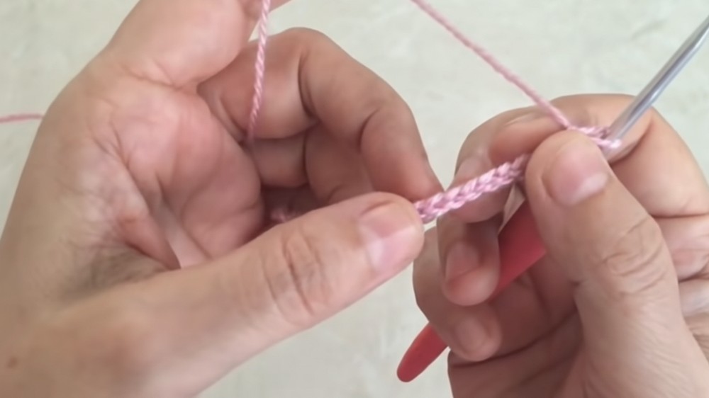 - Chain 1, skip another stitch, and proceed with single crochet.