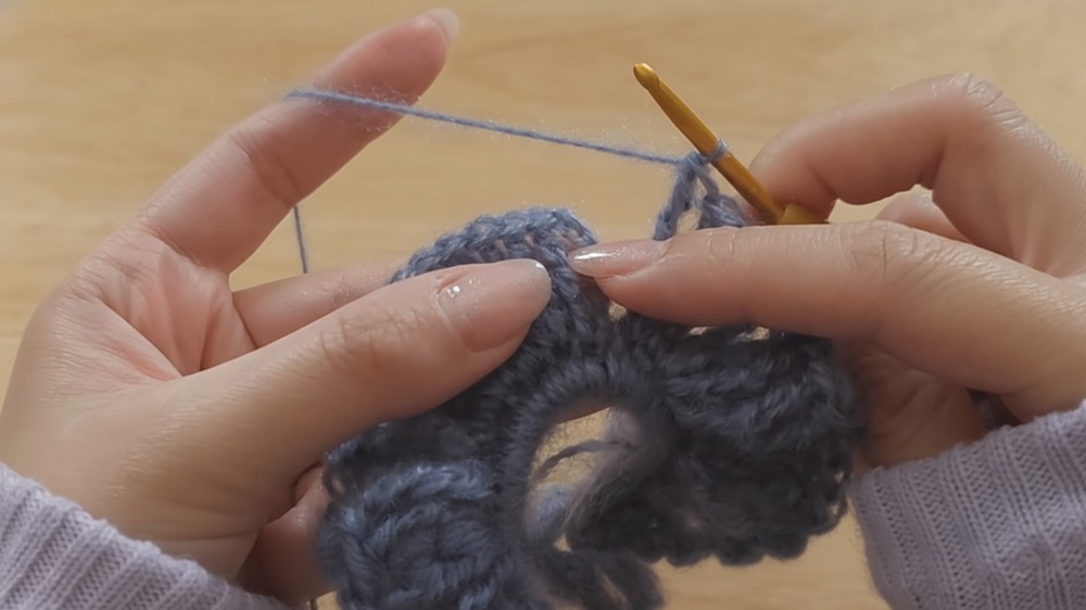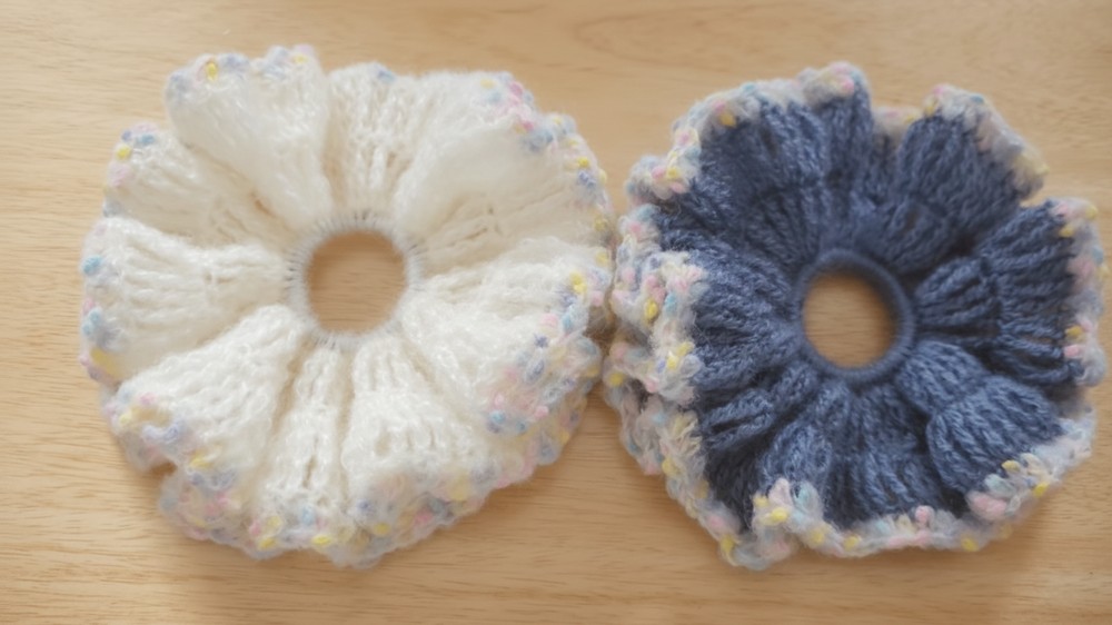 Triple-Treble Stitches: Using yarn-overs three times results in exceptionally tall stitches, giving the scrunchie its unique "height" and airy structure.