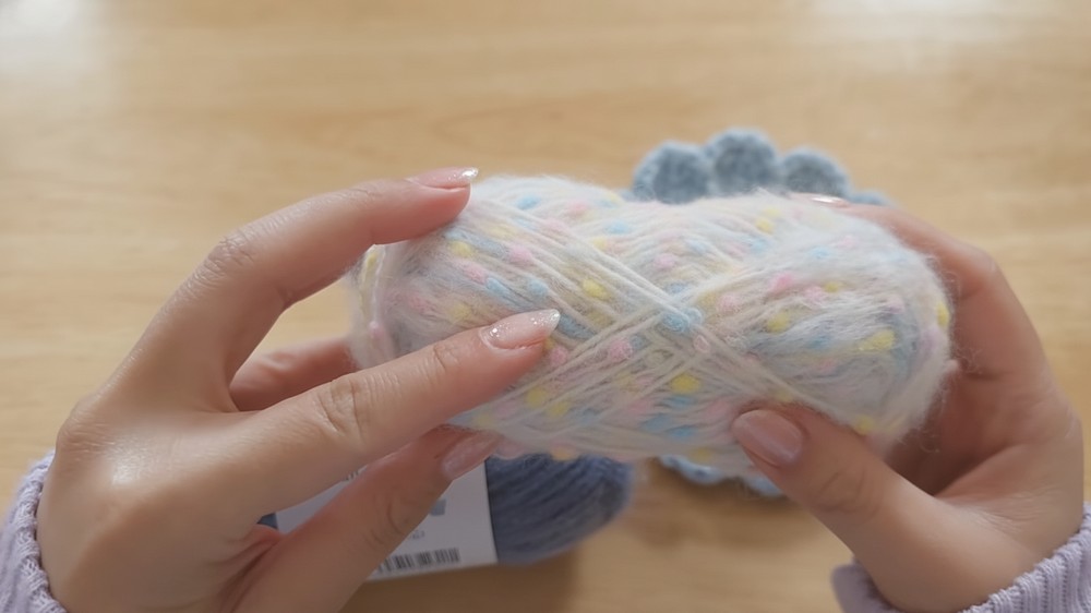 When working with mohair and textured pom-pom yarn, don't pull your stitches too tight. Keeping a slightly loose tension allows the fuzz and the pom-poms to sit on the surface, maximizing the "fluffy" effect without hiding the yarn's unique characteristics.