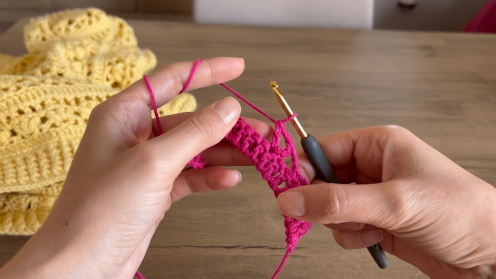 - After the chain is complete, go up with 3 chains.