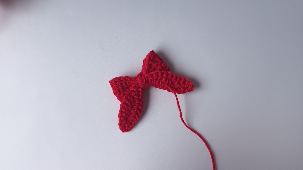 In the mid stage, additional rows are worked to build volume and shape the loops evenly, giving the bow a balanced and polished look.
