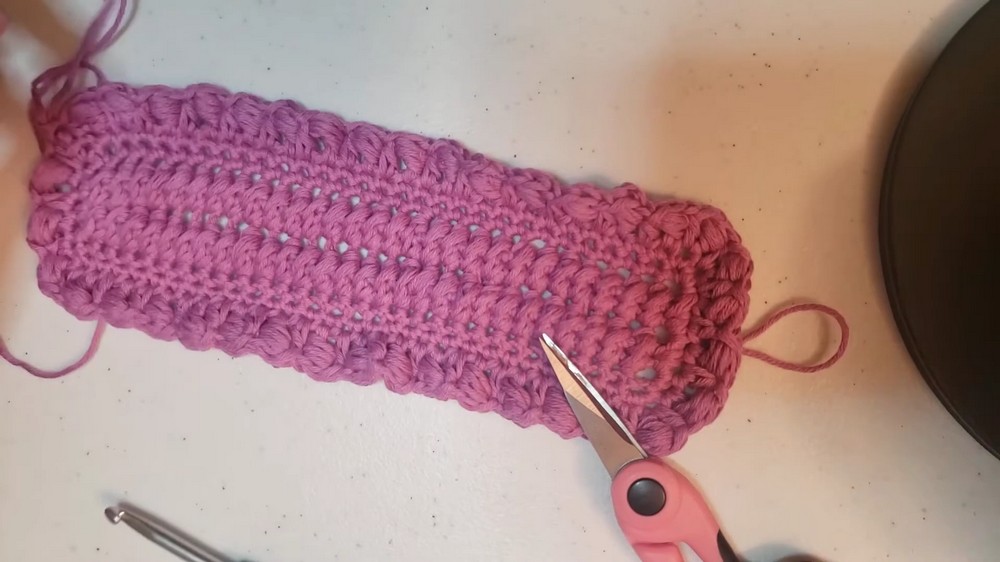 • Finish the last row of the dishcloth with single crochets for a cleaner finish before starting the border.