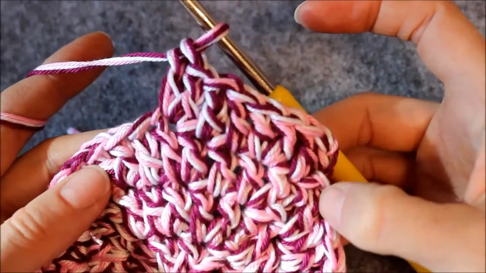 - Alternate between 1 double crochet (DC) in one stitch and 2 double crochets in the following stitch. Continue this pattern.