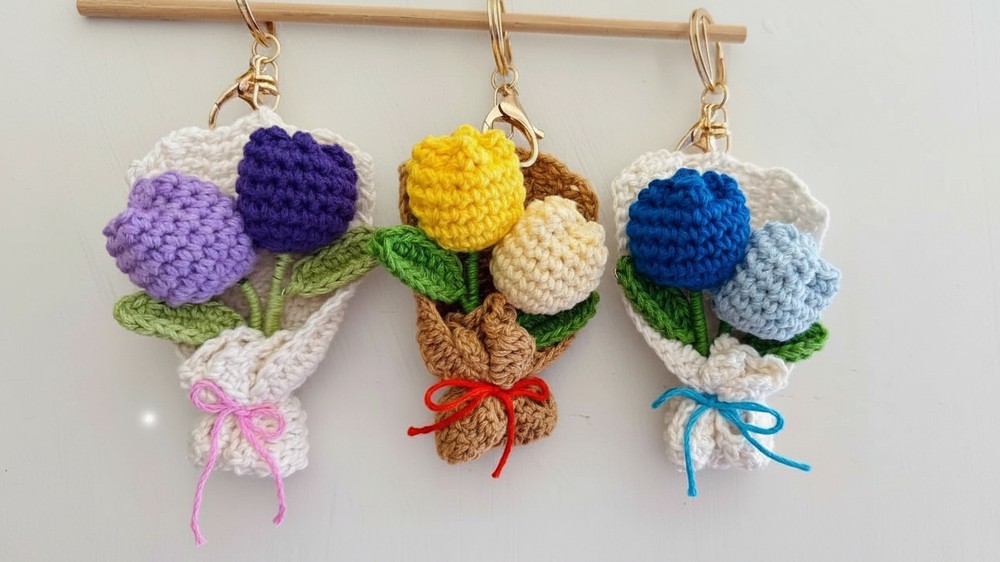 The Tulip Bouquet Keychain is a delightful and versatile project. It transforms simple stitches into a miniature work of art that is both functional and decorative. Its poseable nature and layered assembly make it feel much more intricate than its simple construction suggests.
