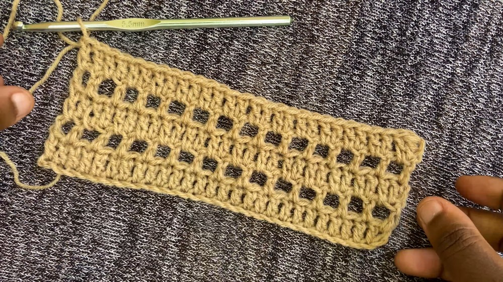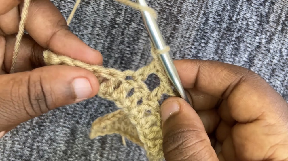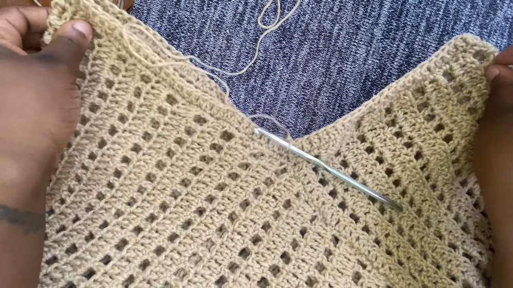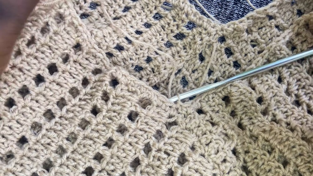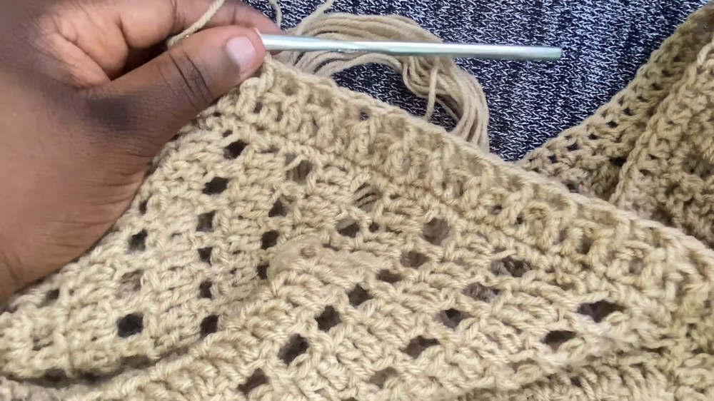 When working the double crochet rows over the mesh rows, ensure you don't miss the chain-1 spaces. Working directly into the space (rather than the chain stitch itself) makes the process faster and gives the fabric more flexibility and "drape."