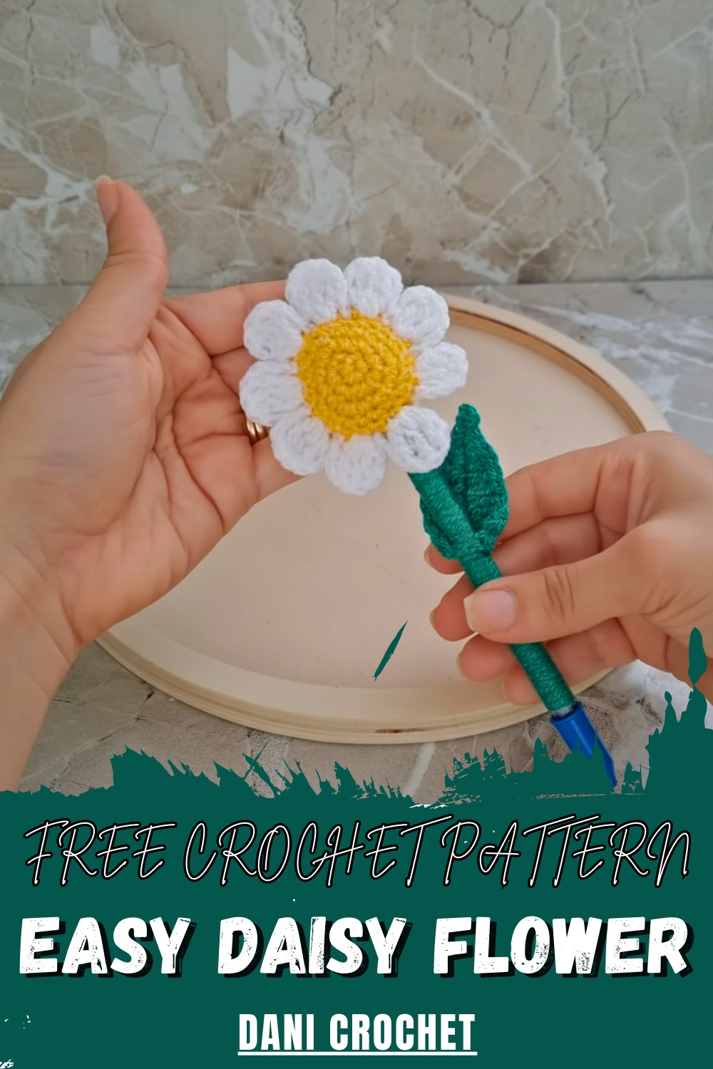 In this video, Dani Crochetpa demonstrates how to transform a standard pen into a beautiful decorative piece featuring a crochet daisy. This project is part of a series on decorated pens and focuses on creating a quick, "in-trend" item that is both functional and aesthetically pleasing.