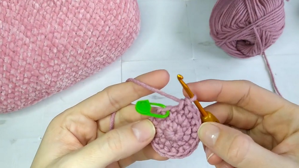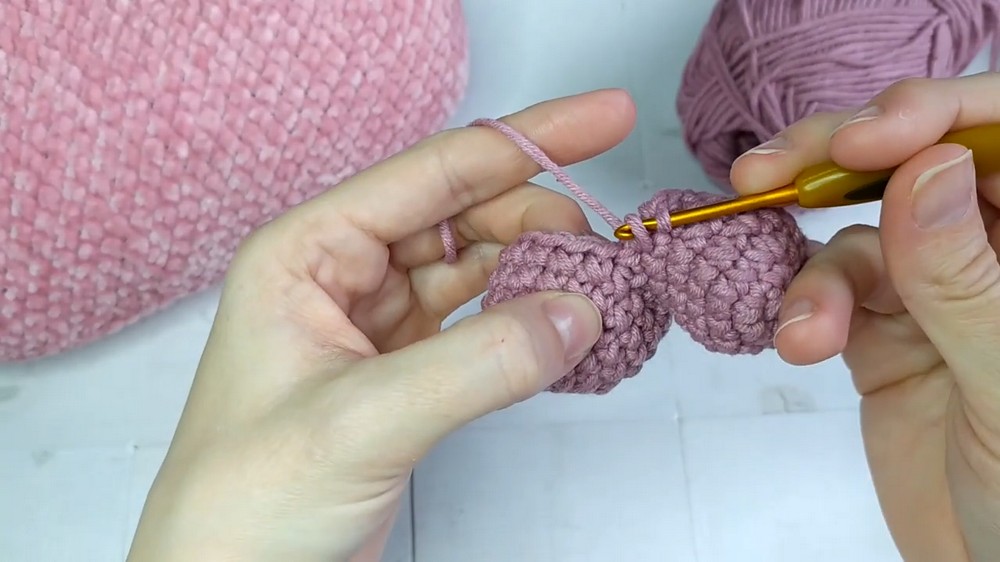 Crossed Single Crochet (X-Stitch): The tutorial demonstrates the technique of catching the yarn from the top ("крестиками") for the single crochet stitches, giving the fabric a tighter, 'X' shape instead of the standard 'V' (known as "галочки" or 'V'-stitch).